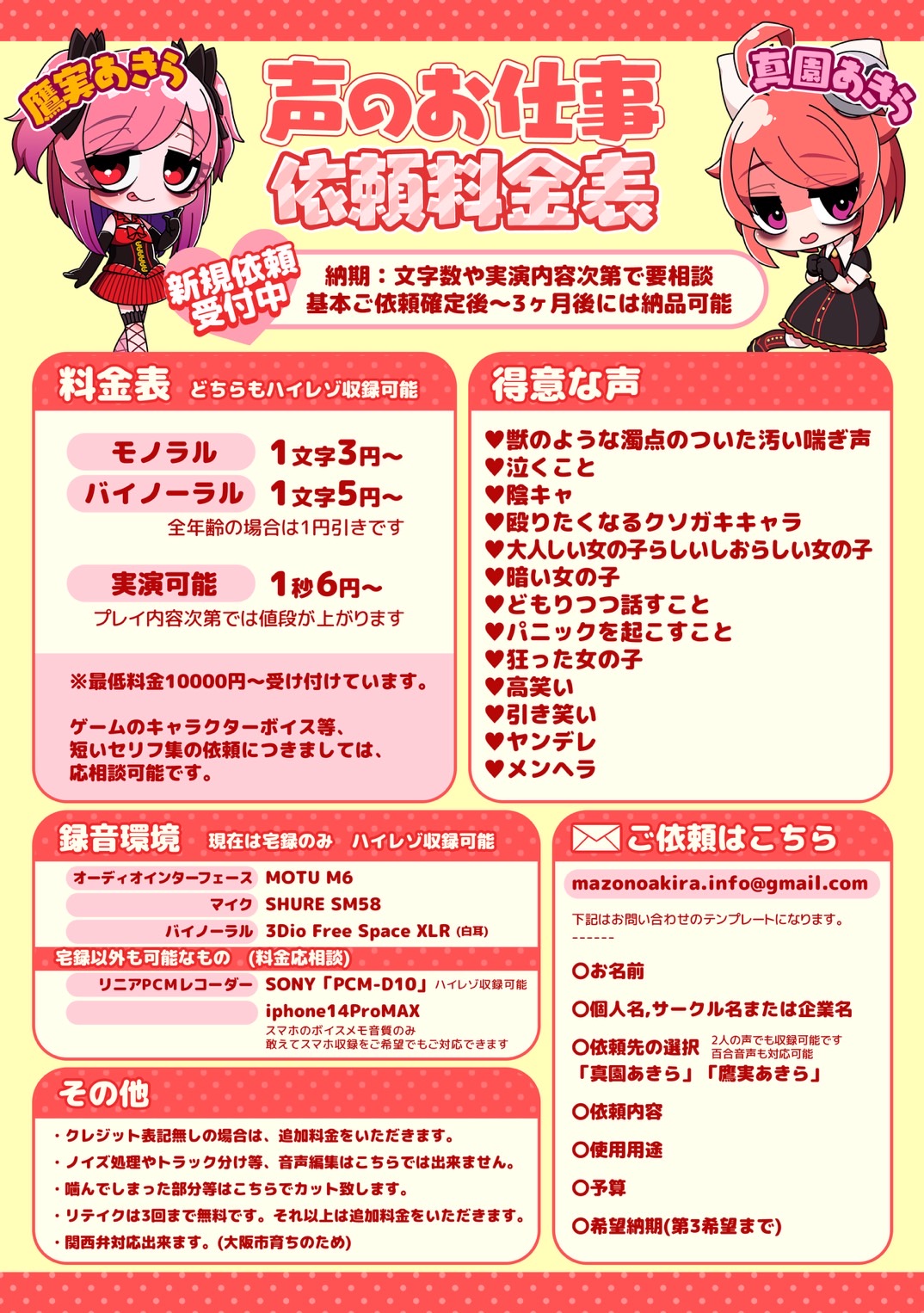 得意なこと:被虐系音声全般、商品レビュー(バイブ類など)